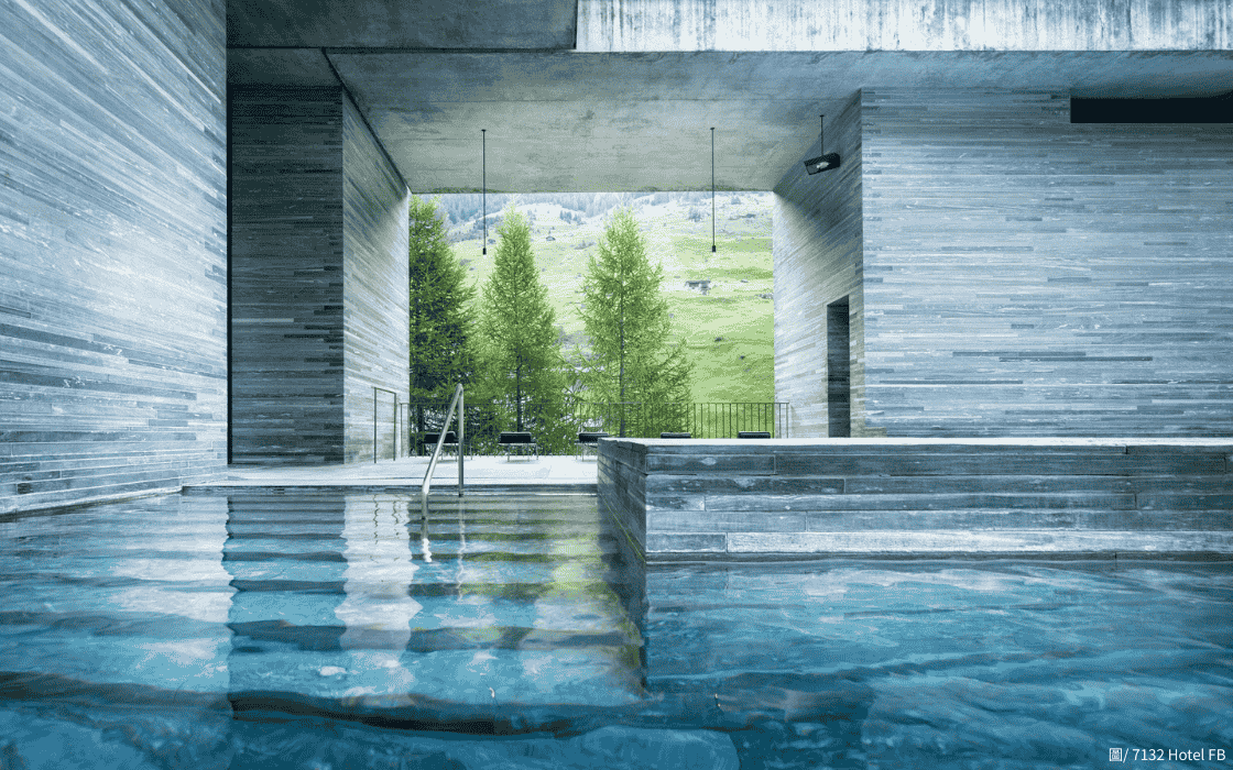 以及瓦爾斯溫泉,被譽為一生一定要造訪一次「瑞士最棒的夢幻溫泉」!為了呈現來自阿爾卑斯山腳下的珍貴聖彼得泉源,Peter Zumthor在設計Therme Vals時使用了六萬塊瓦爾斯石英岩板打造,獨特的氛圍在完工後不久就被授予受保護的遺產地位。