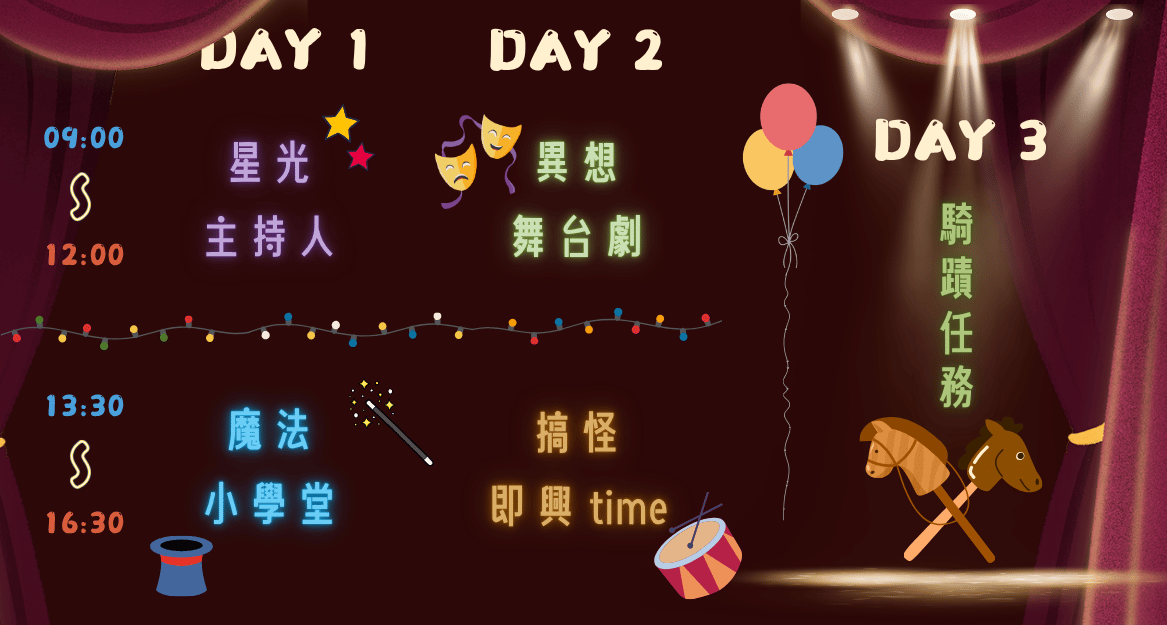 活動日期 ▎第一梯次:7/15(三) — 7/17(五);第二梯次:8/3(一) — 8/5(三)
